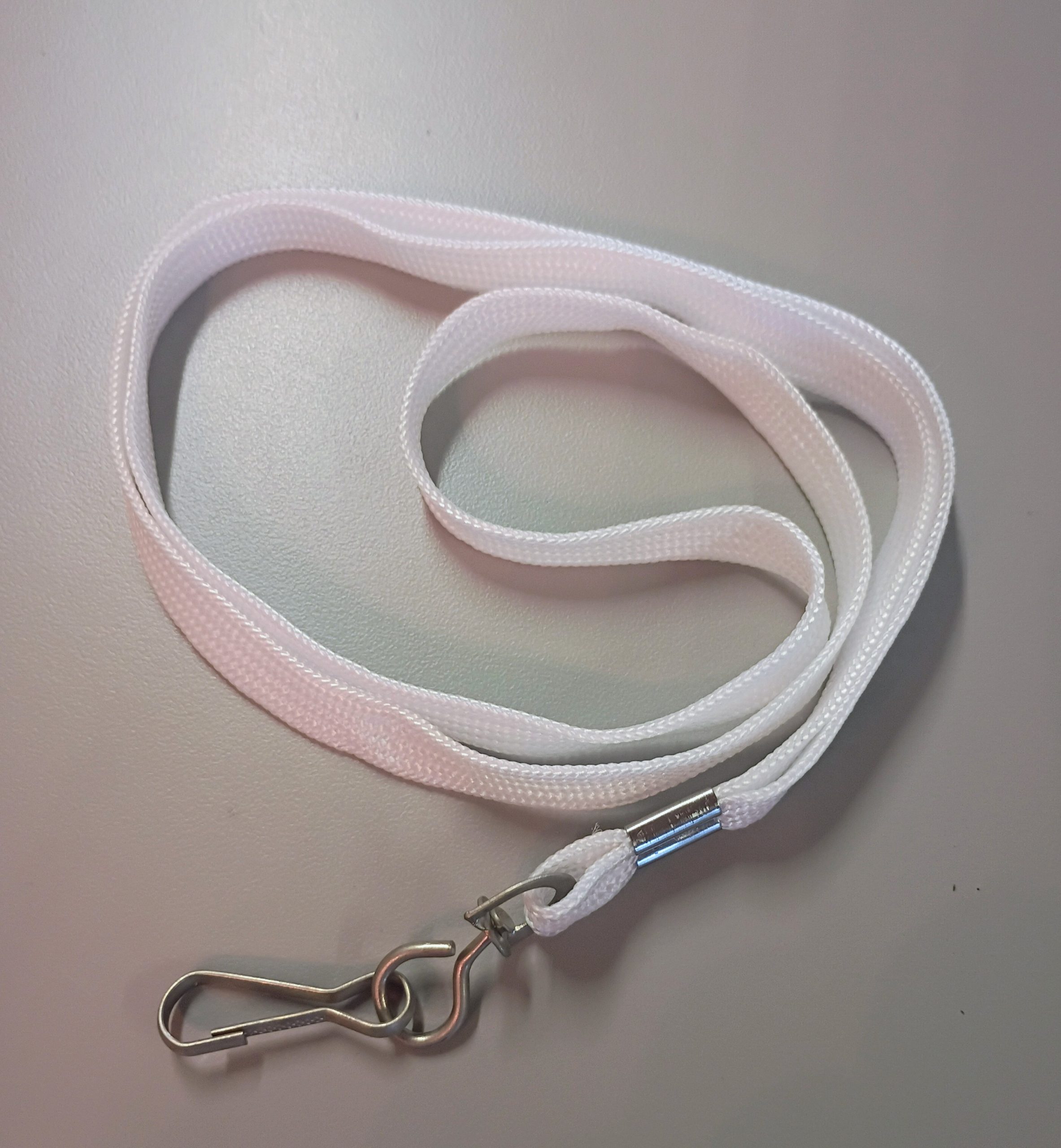 Lanyards clip to the tag & go around the neck. We provide comfortable woven lanyard with a quality clip.